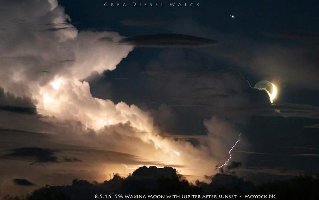 This evening's picture just has to be Greg Diesel Walck's photo of the Moon and Jupiter during an early august thunderstorm: https://pbs.twimg.com/media/CpI_IuIWcAEcNOW.jpg