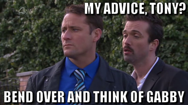 Bend over and think of Gabby are words to live by.