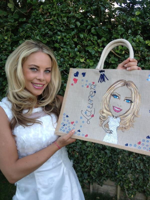 the gorgeous @Lauren_CarreBB with her handpainted portraited bagmebeautiful unique plz rt xx pic.twitter.com/U5QNmwZt