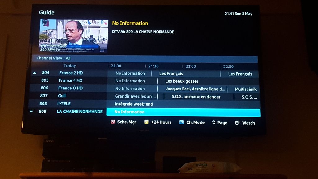 I'm using a Band 1 "H" type antenna (horizontal polarization), at about 18 feet above ground level, then in to an HS Publications D100 DXTV box feeding an old JVC CX-610 TV (which can detect SECAM colour). I'm in Lincoln, UK.