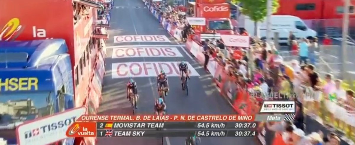 Kennaugh awarded the red jersey with the missing 0.6 secs added to Movistar's on-screen time. Lotto Jumbo restored to sixth after being omitted from top ten graphics.
