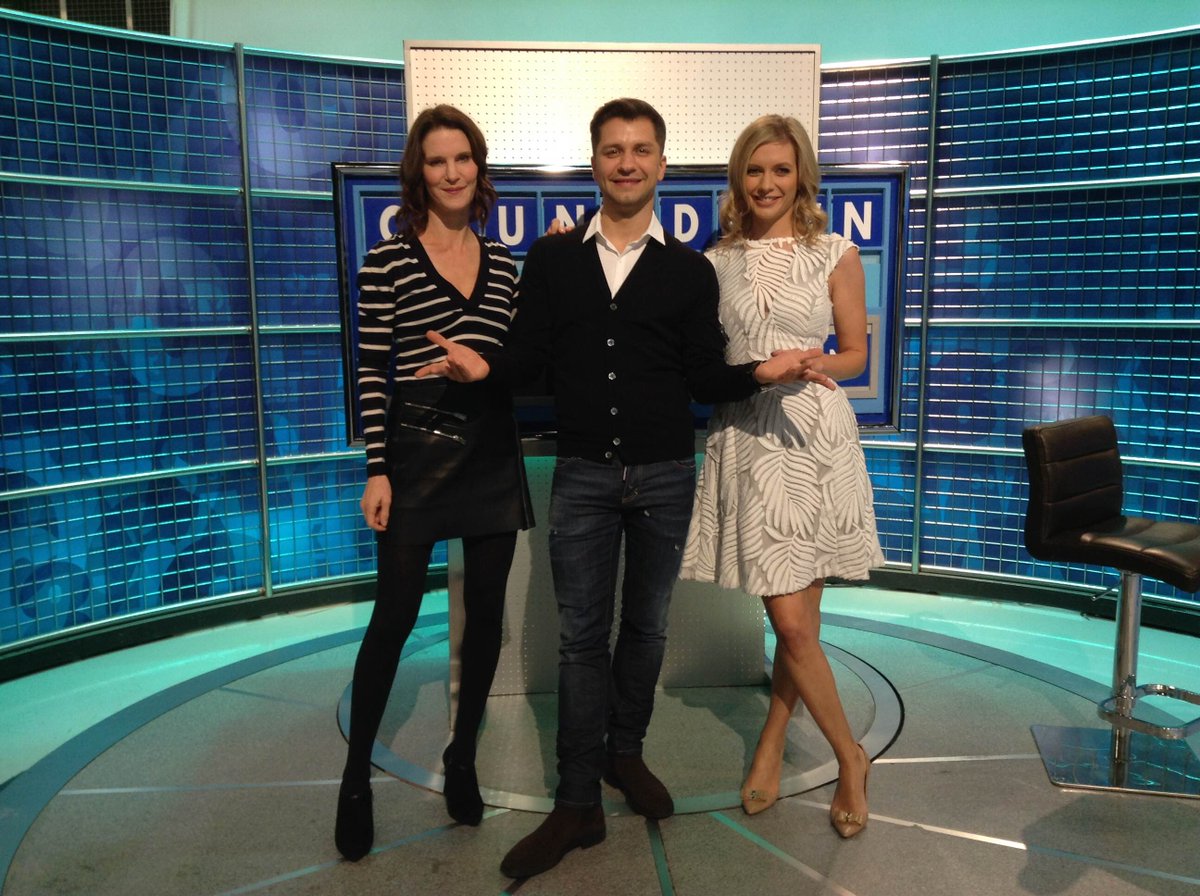 Countdown @C4Countdown 23h23 hours ago Strictly speaking ... @PashaKovalev filming in #DictionaryCorner @C4Countdown ...word up with @RachelRileyRR & @susie_dent - on TV in March https://pbs.twimg.com/media/CzFvZE0XAAAa26k.jpg They film four or five episodes in one day I think, hence the changes of shirt, so he should be on for several days I'm not usually in when it's on, but will definitely watch on catchup. |