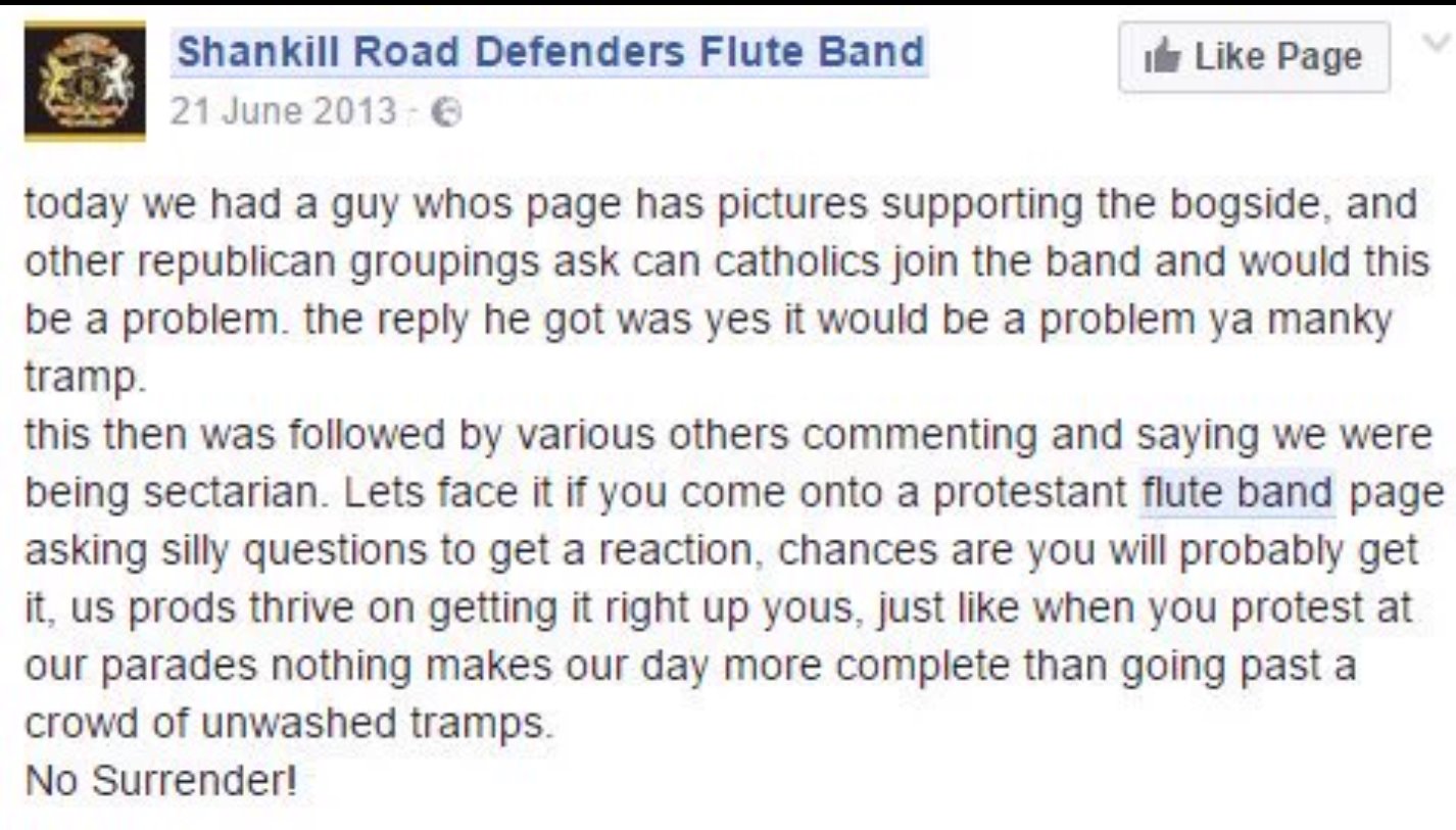 The band concerned are well known for campaigning against sectarianism and breaking down barriers.