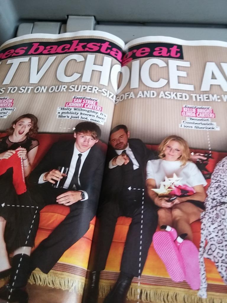 https://pbs.twimg.com/media/Bxo9eBPCcAADjg-.jpg:large I wonder which magazine this is taken from? And oh my goodness he's sat next to Maisie Williams from Game of Thrones. Very cool! ![]() That's awesome! That could be photoshopped though, or a panorama with several pictures of various actors on that sofa amalgamated into one. Still it would have been awesome if he'd got to meet her. Or better yet Holly Willoughby - think she was at the TV Choice Awards as well?