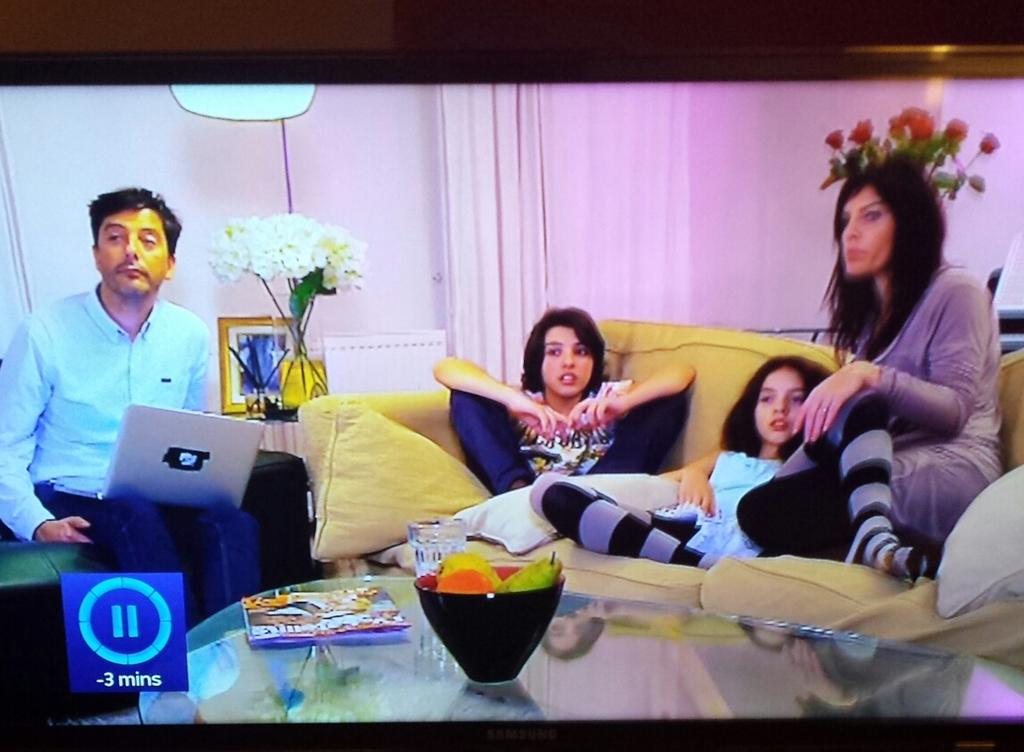 I think we saw them twice and both times the father and two kids were already seated - Dad on his laptop ignoring the telly - and the mother plonked herself down a few seconds in so she could make a dramatic entrance carrying the cat wearing its hat. I thought it smacked of forced eccentricity - but I would have liked to have seen them a bit more to make a definite decision. |