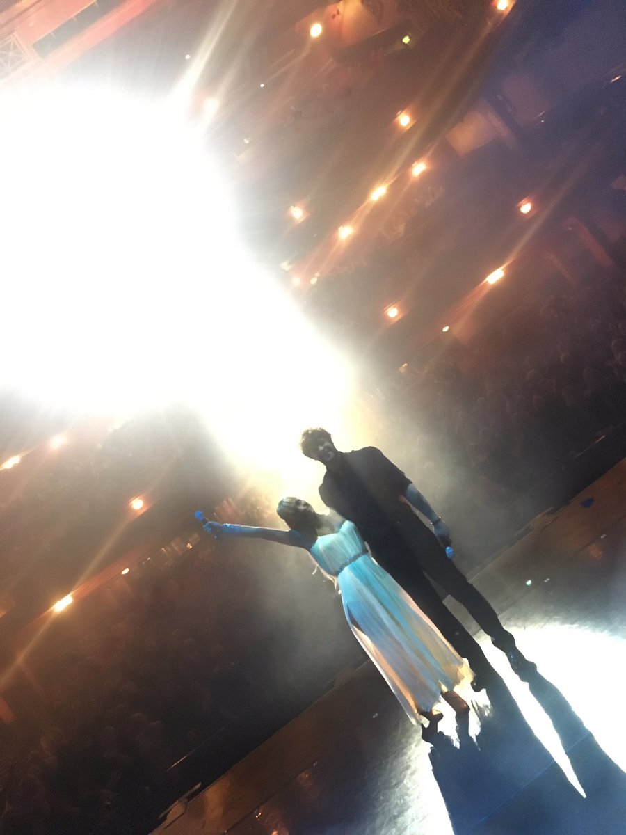 The dance. Ed descends from the ceiling 'playing' a piano. He's looking slimmer. Hope the dance is good. Well I thought it was, so there! Seemed to remember all the choreography - and there was a lot to remember, and he kept up well with the ensemble bits. Kicks and flicks, maybe, could do with a bit of work. But all in all, I think that he's worked hard, and put in a good effort - as usual. Finished draped across five pro's, to 'Goodness Gracious Ed Balls of Fire'. The audience loved it.