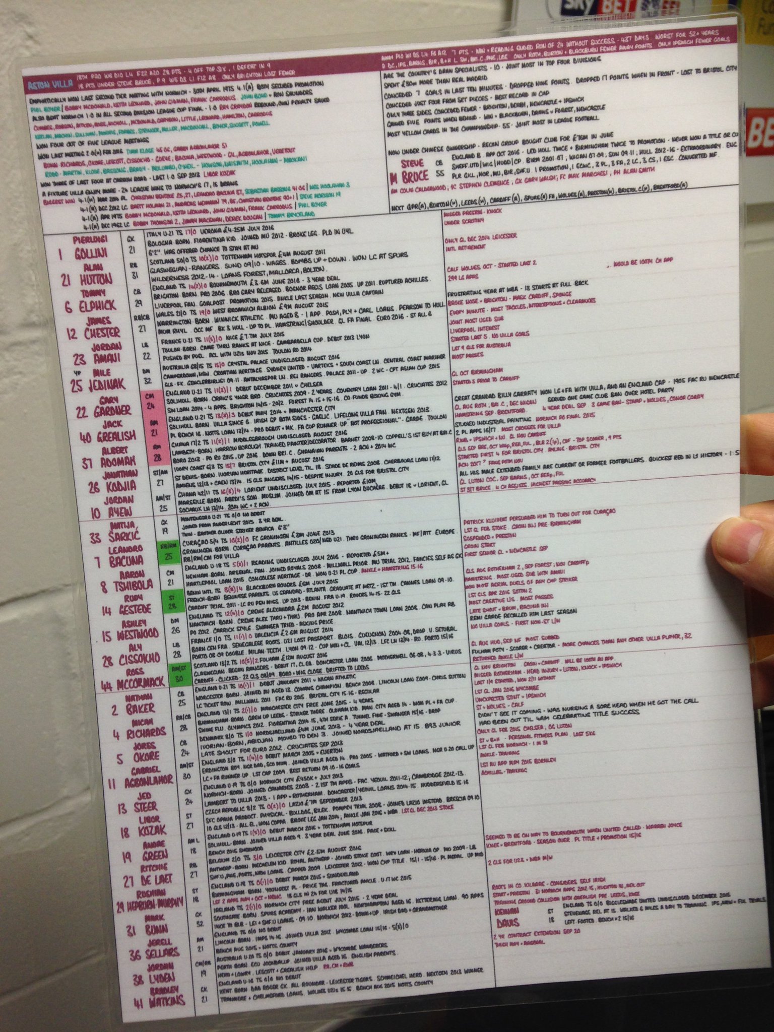 Link to full-size pic (hope this works) - https://pbs.twimg.com/media/Czu593iXEAAn95G.jpg:large 10/10 for preparation and hand-writing. At a glance, you'd think it had been printed out on a computer. How commentators actually reference these minuscule notes whilst following what is going on in a match is another matter... perhaps the commentators of this thread could lend an insight!? EDIT: Probably should have listened to the podcast it also links to first - but it would seem the idea is to absorb the information as much as possible in advance, so you aren't so reliant on looking information up during the game. Makes sense, but sounds like a challenge! And comms don't always have the luxury of being able to prepare for a game in this way... My handwriting is terrible. Prefer to use computerised templates and colours. I don't mind have a few pages of different notes Eg, Squad lists, Goalscoring charts/stats, general matchday info etc etc. Pic 1. / Pic 2. For me slightly bigger fonts etc makes it a bit easier to glance down. It was shall we say fun when I was uni. Doing 2-3 games a week and mountain of Honours coursework and game notes. ![]()
