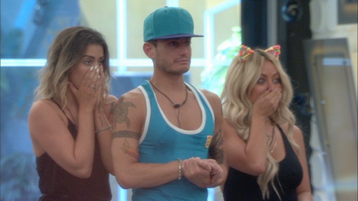 12.43pm: No they're not watching a horror film! What could have made those faces so shocked? 😳😳😳 #CBBLive