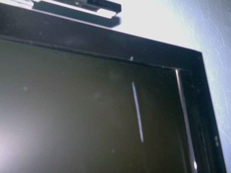 I think that maybe the plastic of the remote chipped and then the resulting dust smeared down the screen like that, and it is possible to see through the mark when watching TV normally. I am not actually sure whether the screen is damaged or if the mark can be cleaned off. What would be the best thing for me to do (aside insurance claim)? Thanks |